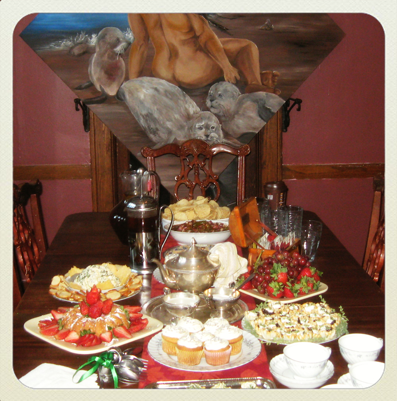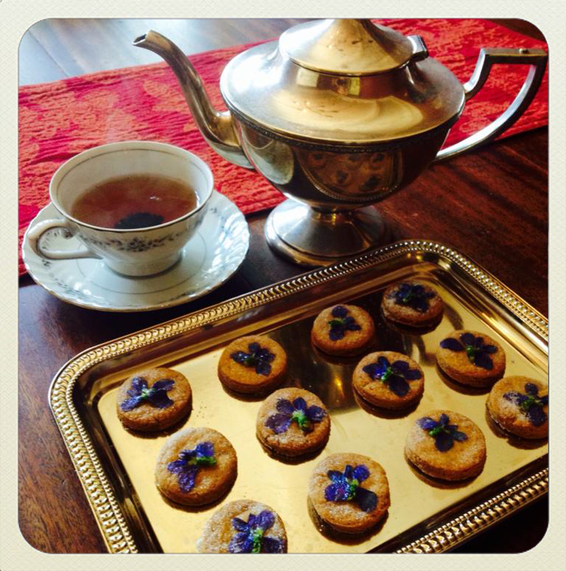 04-2014: Taking Isidore Out to Tea — My lovely friend Kate, the Wormwood Queen, had a tea salon at her house this afternoon. The theme was flowers and all those goodies and teas offered were flower-rich! Sugar violet topped cookies and Earl Grey tea flavored frosting on a sweet rose cupcake. It was divine! Afterwards a few of the resident tarot readers took the Isidore Tarot for a spin and gave me their feedback. It was a lovely day!